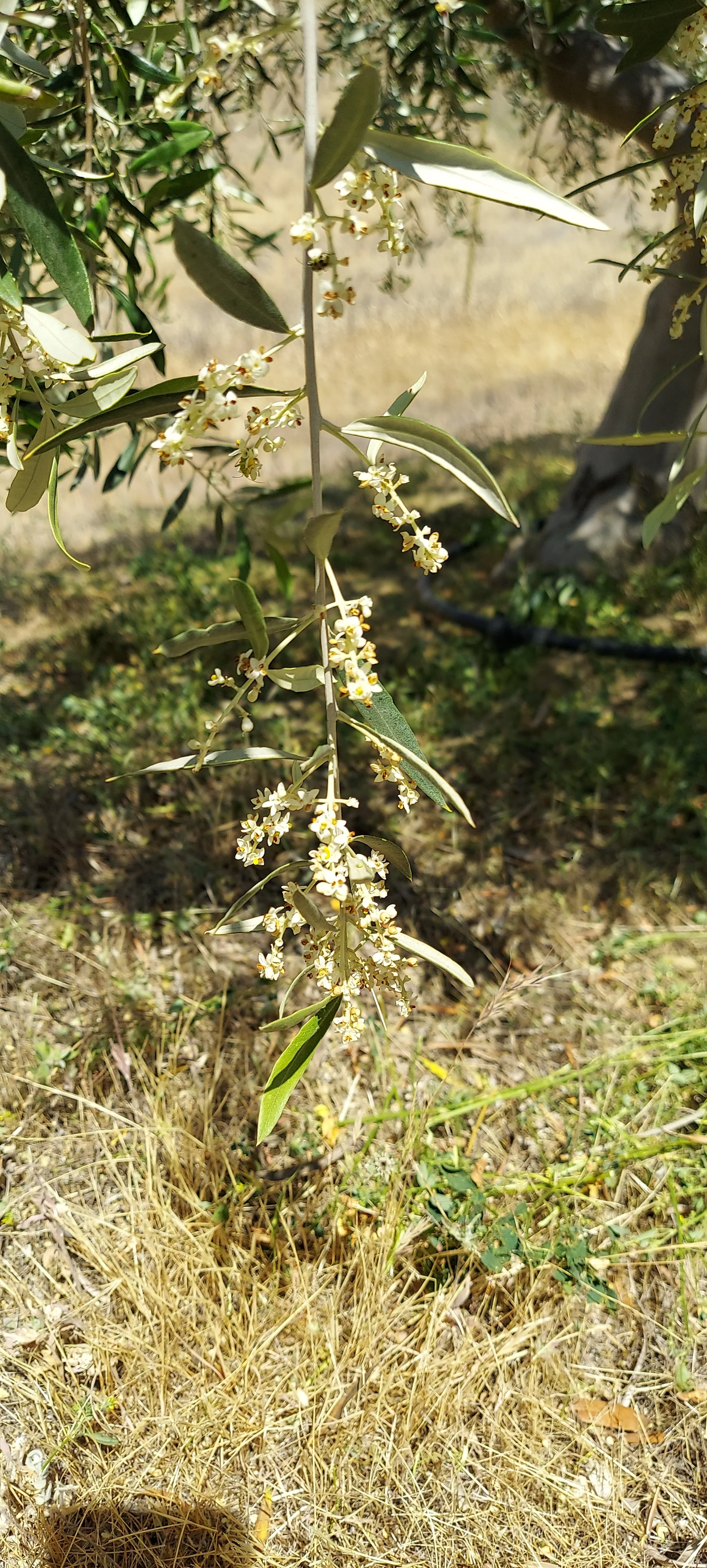 A slow-growing evergreen tree with single or multiple gray trunks that become gnarled with age. Branches form a tall, rounded crown. Gray-green foliage is narrowly elliptic and silvery underneath. Small, spring flowers yield edible, commercial-grade olives. Good for oil production, and both green and black pickling. Partially self-fertile”.